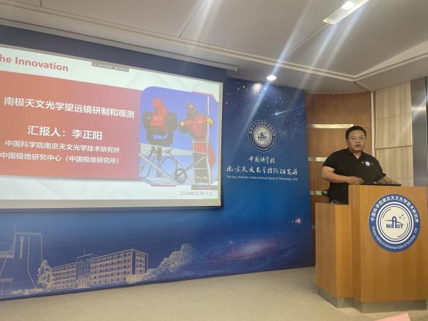 活动特邀第十九届江苏青年五四奖章获得者、南京天光所团委书记李正阳研究员作题为《南极天文光学望远镜研制和观测》的分享报告。李正阳先后三次前往南极进行科学考察,是南极科考的优秀科考队员。南极常年冰雪覆盖,气候极端恶劣,人迹罕至。正是这样的环境,为天文观测提供了得天独厚的条件——清晰、无污染的夜空。但在这样被誉为“人类不可接近之极”的环境中工作,不仅要求科研人员具备深厚的天文和光学知识,更需要科研人员具备埋头苦干、艰苦奋斗的科研热情。他牢记初心使命、勇攀科技高峰,极力克服在设计、制造到运输、安装等每一个环节遇到的各种困难挑战,助力国际上最大口径的南极光学望远镜等关键设备建设,用自己的实际行动践行了新时代青年的责任和担当。