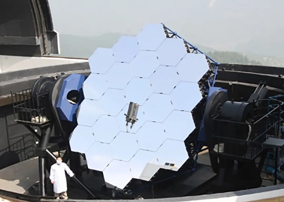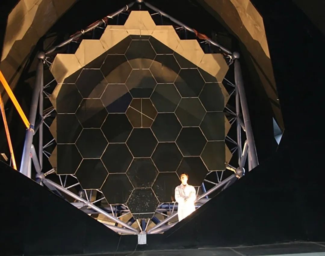 大胆采用变形+拼接的全新模式;在同一光学系统中同时运用两块大拼接镜面:主动变形镜Ma尺寸为5.72米×4.4米,球面镜Mb尺寸为6.67米×6.05米。这一创举在世界天文望远镜制造领域独占鳌头。