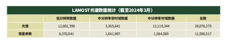 LAMOST投入运行后,取得了一系列令人瞩目的科学和技术成就,在国际天文领域占据了重要地位。截至2024年3月发布的DR11数据集,在2011年9月至2024年6月的观测期间,LAMOST共获取28078375条光谱,率先迈入千万量级天体光谱观测时代,在国际大规模光谱巡天领域保持领先优势超过10年。