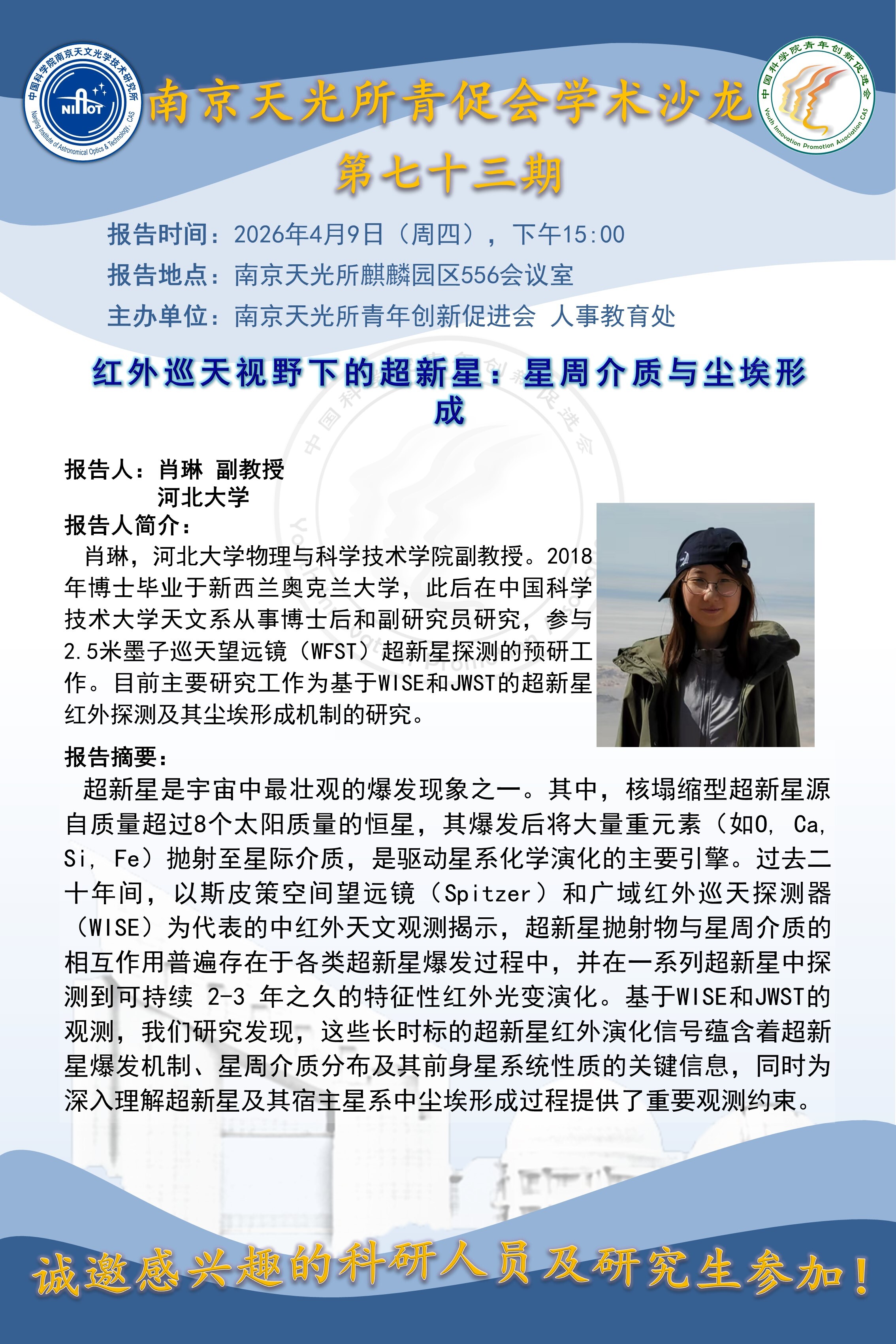 【4月9日】红外巡天视野下的超新星:星周介质与尘埃形成
