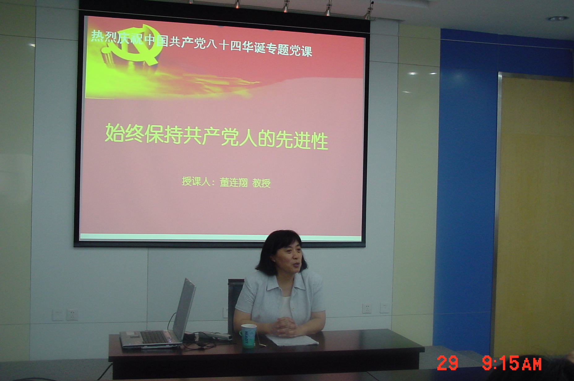6月29日上午,为庆祝中国共产党成立八十四周年,我所邀请江苏省委党校党史党建教研室副主任董连翔教授为全体党员和入党积极分子上了一堂生动的先进性教育专题党课。