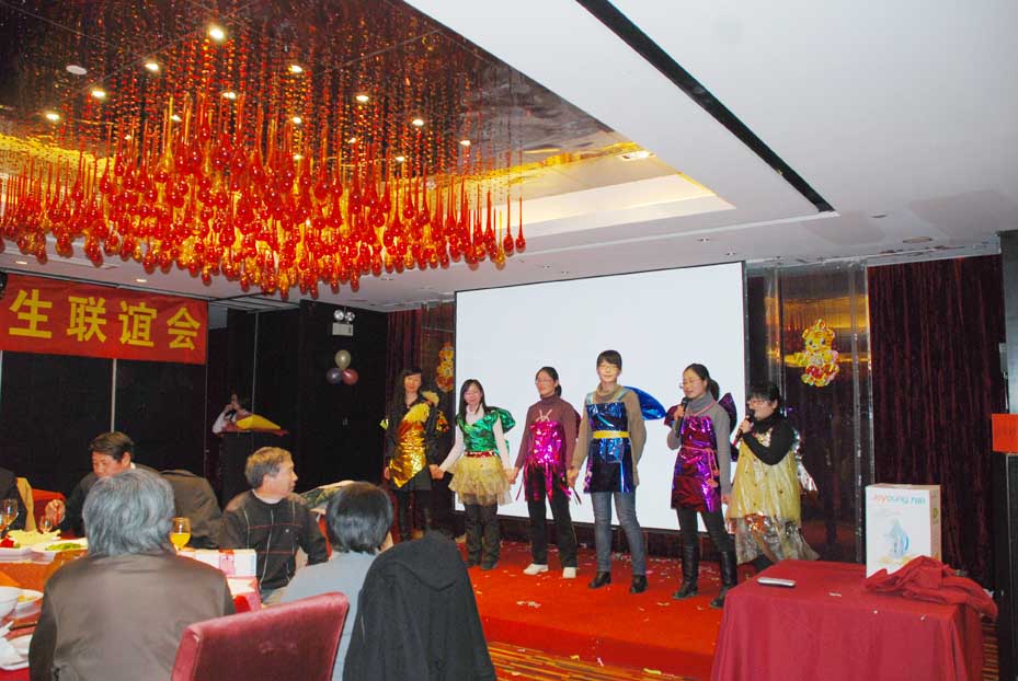 随着副所长朱永田热情洋溢的致酒辞,大家举杯共庆,晚会拉开了序幕。当主持人身着同学们自制的“彩衣”上台时,台下响起了阵阵掌声,大家为同学们能充分发挥自己的创造力、变废为宝的想法而鼓掌。接着同学们也纷纷拿出自己的绝活,各展才艺,有美妙的女生独唱、有精彩的吉他弹奏、有搞笑的相声小品、有好玩的游戏,尤其是同学们自编自演的相声《晒晒80后的事》和小品《霸王别姬》,赢得满堂喝彩,掌声不断。这些形式多样的节目既说出80后学生的心声,又充分展示了80后学生的多才多艺。看着台上同学们精彩的表演,老师们也不忘助兴,李德培研究员还上台表演诗朗诵—《沁园春. 雪》,抑扬顿挫,声情并茂,将晚会推向了一个高潮。
