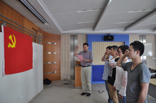 报告会后,所党委举行了新党员宣誓仪式。南京天光所所长兼党委书记朱永田带领四名新党员面向鲜红的党旗举起右手庄重宣誓为共产主义奋斗终身,全体党员一起见证了这一庄严时刻。