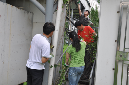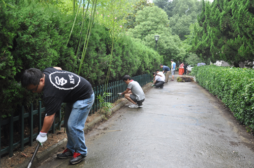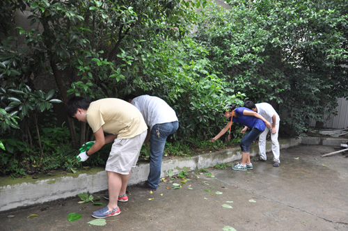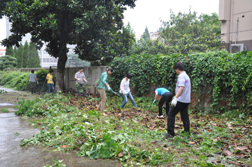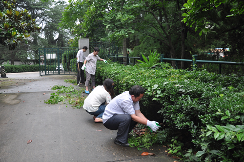 下午,南京天光所的党员们在各支部书记的带领下开展“迎青奥快乐大扫除”活动,针对研究所园区内的卫生死角进行整治。南京近日连降大雨,草地潮湿松弛,踩下去满脚沾泥,而且活动伊始,天空又开始下起了毛毛细雨,但党员们热情高涨,充分发扬一