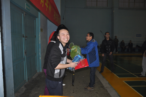 经过激烈的角逐,男单和混双冠亚季军脱颖而出,男单冠军:冯政森,亚军:韩建,季军:杨聪、徐晨。混双冠军:冯政森、陈丽燕,亚军:王琪、姚燕,季军:李恒、陈红。由郑健代表团委向获奖选手分别颁发了一二三等奖的获奖证书及奖品,同时赛务组也为优秀奖获得者和其他参赛者准备了纪念奖品作为鼓励,第二届“天光青年杯”羽毛球赛在快乐融洽的气氛中圆满结束。
