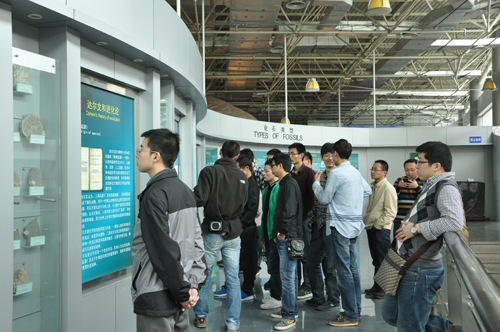 南京古生物博物馆位于环境秀美的中科院古生物所园区内,该馆以古生物化石标本为题材,展示了地球和生命演化过程。展览内容包括一个“生命的进化” 主题展和十四个专题展。主题展由门厅、上山之路、化石奥秘、地球的起源、前寒武纪、古生代、中生代、新生代为轴线。专题展分别为澄江动物群、恐龙天地、微观世界、生物登陆、无脊椎动物化石大观、二叠纪生物大灭绝、古植物园、海百合化石墙、热河生物群、鸟的起源与演化、恐龙时代的海洋、南京地史演变、南京直立人和“我从哪里来”。这些展览采用大量的珍稀标本、精美图片、仿真模型、景观复原和多媒体等现代技术手段,充分展示了化石的奥秘和古生物的多样性,再现了生物进化及其与环境协同演化的历史,展示了中国古生物学的重大发现和研究成果,启发和增进了团员青年们对自然历史的兴趣和认识。
