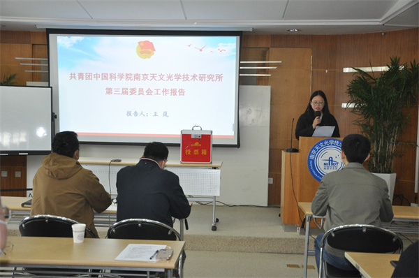 会议审议通过了南京天光所第三届团委的工作报告和《南京天文光学技术研究所团委换届选举实施办法》,通过无记名投票方式差额选举产生了由关智文、汤丽峰、李正阳、张茜、陈超、武亚博、段然(按姓氏笔画为序)等7人组成的南京天光所共青团第四届委员会。