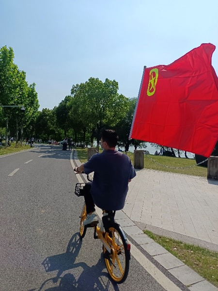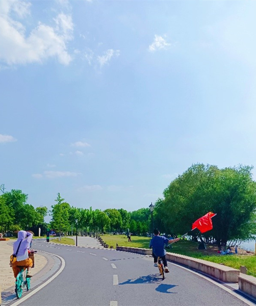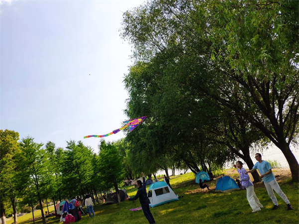 在踏青途中,团员青年们手持团旗交替接力。鲜艳的团旗迎风招展,充分彰显当代青年团员青春健康的风采,在沿江步道上形成了一道亮丽的风景线。最后,团员青年们一起来到绿博园的草地上开展围棋、跳棋、套圈、摄影、放风筝等活动。