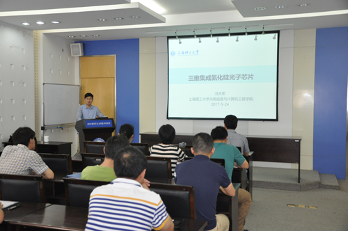 2017年5月24日,第十五期所青促会学术沙龙邀请到上海理工大学冯吉军教授作题为“三维集成氮化硅光子芯片” 的报告。冯吉军教授在介绍光子芯片的主要特点及国内外研究现状后,重点向大家展示了他在氮化硅光子芯片方面的研究工作,如基于光波导的滤波器、分束器、光开关、高精度折射率测量装置等,最后,针对天光所研究方向,提出可能的合作研究点。