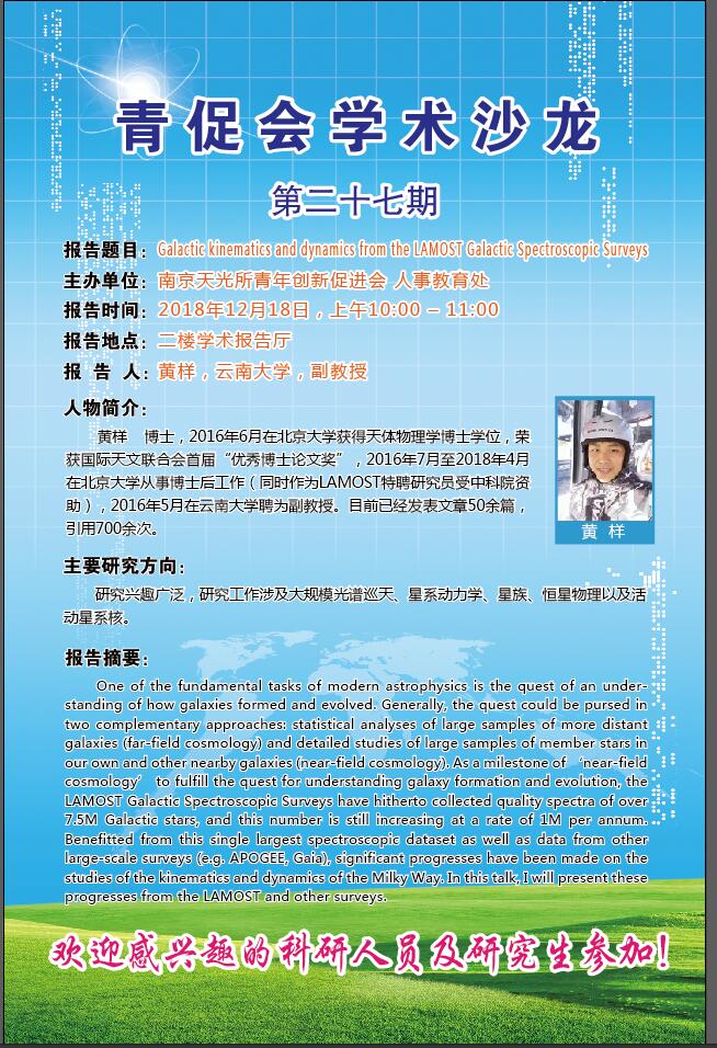 12月18日:青促会学术沙龙 Galactic kinematics and dynamics from the LAMOST Galactic Spectroscopic Surveys