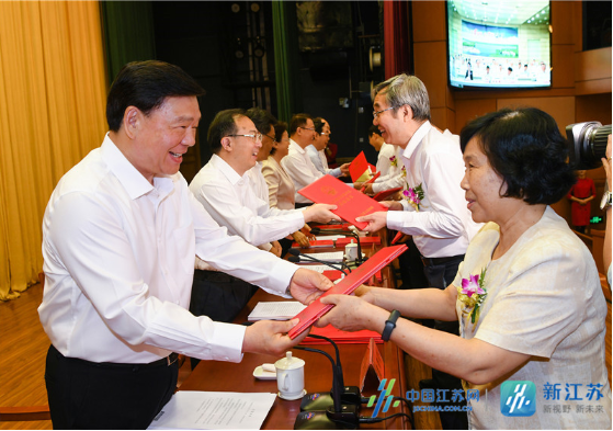 6月10日,江苏省委、省政府在宁举行全省科学技术奖励大会,深入学习贯彻习近平新时代中国特色社会主义思想,隆重表彰2019年度省科学技术奖获奖单位和个人,激励全省广大科技工作者攻坚克难、勇攀高峰,为推动高质量发展走在前列、建设“强富美高”新江苏提供坚实科技支撑。省委书记、省人大常委会主任娄勤俭出席大会并颁奖,省委副书记、省长吴政隆在会上讲话,省政协主席黄莉新出席,省委副书记任振鹤主持大会。