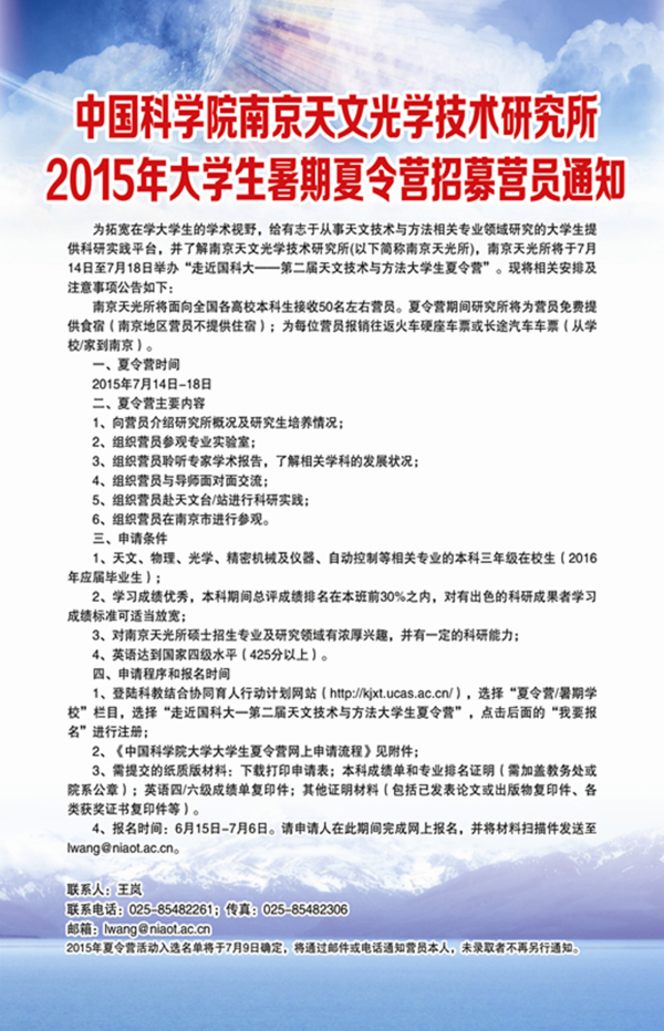 2015年大学生暑期夏令营招募营员通知海报