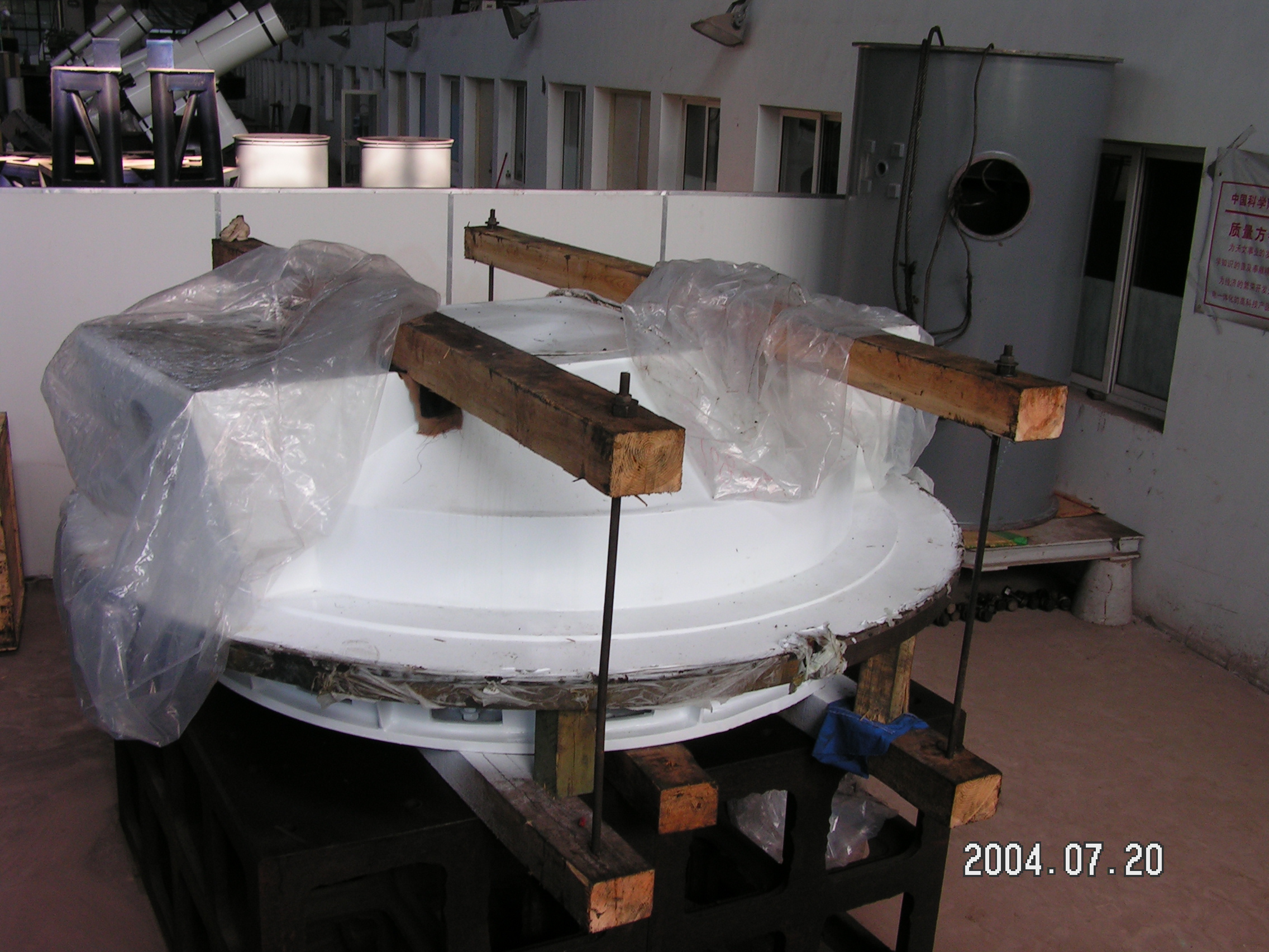 由中科院南京天文光学技术研究所负责研制的云南天文台一米红外太阳望远镜,其中的方位液压转台已由武汉重型机械厂完成加工、装配和调试,并于2004年7月19日夜运抵南京天光所,目前正与由天仪公司负责加工的其余部分一起进行总装调试,天仪公司负责加工的部套也已接近尾声,部分部套已装配完成,这标志着该望远镜机械部分已进入总装调试阶段。