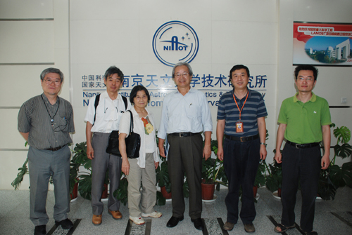 2013年6月20日下午,国际天文学联合会(IAU)主席、日本国立天文台海部宣男教授、紫金山天文台资深研究员刘彩品等专家一行4人访问南京天光所。海部主席等来宾在朱所长等陪同下依次参观了天光所的镜面技术实验室、大口径光学技术实验室、系外行星探测实验室、光谱仪等实验室,朱所长向来宾详细介绍了南京天光所的发展近况,双方并就相关问题进行了交流。