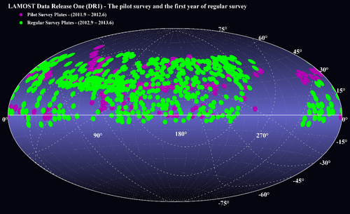 LAMOST首批光谱取得于2011年9月至2013年6月间的两年巡天观测任务,它包含有220万条光谱,其中信噪比大于10的恒星光谱172万条,超过目前世界上所有已知恒星巡天项目的光谱总数。发布数据中还包括一个108万颗恒星光谱参数星表,该表是目前世界上最大的恒星光谱参数星表。这批数据已在2013年8月对国内天文学家和国际合作者优先发布。根据国际天文研究惯例,数据保护期之后,数据对全世界开放共享。科学用户可登录http://dr1.lamost.org/ 网站进行数据查询和下载。