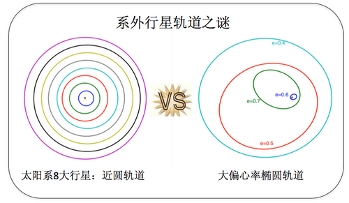 图2:系外行星轨道之谜:系外行星轨道主要是类似太阳系行星的近圆形轨道,还是大偏心率的椭圆轨道?