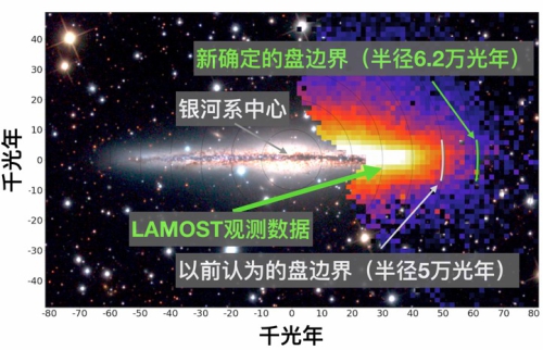 但是近年来,一些观测在这个边界之外陆续发现一些属于银盘的年轻恒星,这似乎暗示银盘的边界应该更大。要证实这点还需要对更多、更远的恒星进行统计。因此,直到LAMOST这样能够获得数百万条恒星光谱数据的项目出现,才真正意义上开启了精确研究银河系结构和演化的新篇章。