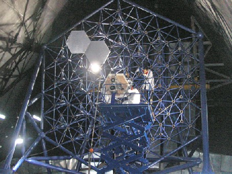 2007年2月4日,国家重大科学工程项目“大天区面积多目标光纤光谱天文望远镜(LAMOST项目)”首批三块1.1米六角形主镜子镜在望远镜安装现场—国家天文台兴隆观测站顺利安装成功。