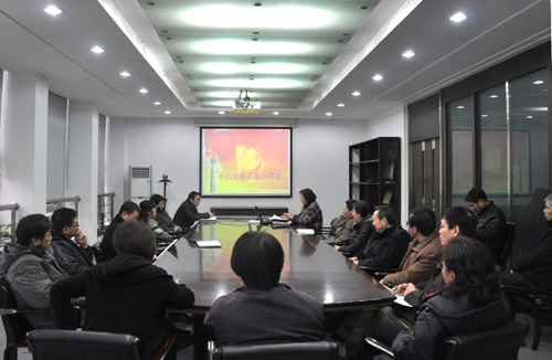 张丽萍书记作了南京天光所学习宣传贯彻十八大精神的动员,对全所学习宣传贯彻十八大精神的活动和工作进行了部署。随后张书记带领与会人员详细解读了十八大报告的要点,对十八大报告四个板块具体十二个部分的主要内容进行了介绍,并就报告中的新思想、新观点、新提法进行了解读。