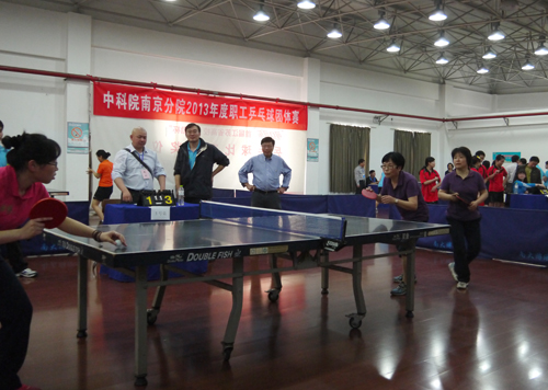 5月11日,由南京分院体协主办的“中科院南京分院2013年度职工乒乓球团体赛”在南京大学学生体育活动中心举行。我所乒乓健儿奋力拼搏,取得了第二名的优异成绩!此次比赛为混合团体赛,包括男单、女单、男双、女双和混双,分院系统有8支队伍参加了比赛。