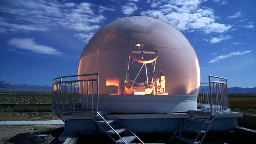中国SONG项目包括1米望远镜(图2,在初光后为望远镜拍摄的一副照片,在内部打光后转动圆顶,用Nubia z9长曝光模式拍摄)及其附属的幸运成像系统和高分辨光谱仪,以及前期进入科学运行的50BiN网络中国节点望远镜(项目由西华师范大学全额投资,又名西华师大50厘米双筒望远镜)。SONG1米望远镜及终端仪器研制任务由中国科学院国家天文台南京天文光学技术研究所承担。该系统集成了薄镜面主动光学、幸运成像、碘盒定标高分辨视向速度测量(R=60000-120000RV=1m/s)等一系列新技术手段。此套设备将服务于恒星物理研究中两个主要的科学目标:(1)基于幸运成像技术的微引力透镜方法探测系外行星;(2)基于视向速度的星震学方法研究恒星内部结构。这是当前时域天文学的两个典型科学目标,其科学成果依赖于网络的建设。中国SONG项目是国际网络的一个节点,也是成功实现科学运行的第二个节点。中国节点的成功,意味着国际SONG计划继去年10月丹麦的SONG-Hertzsprung望远镜进入单节点运行之后,可以进入正式的网络化运行。这是实现整个网络科学目标极其重要的一个环节。在实现初光后,在站的全体工作人员,包括来自丹麦奥胡斯大学的Frank GrundahlMadsAndersen进行了一个简单的仪式,以庆祝这个值得纪念的时刻。