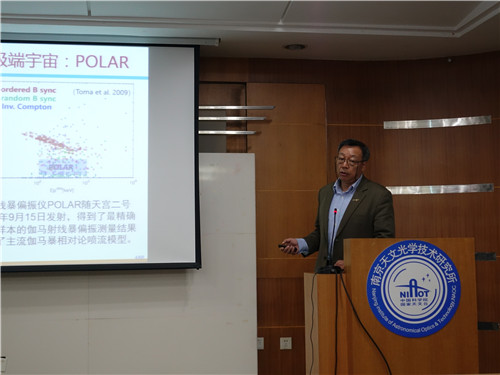 中科院南京天光所与天仪公司共同举办的“成立60周年庆祝活动之天文前沿科学与技术高端论坛”第五期讲座于2018年12月26日成功举行。中国科学院高能物理研究所张双南研究员应邀做了题为“探索极端宇宙”的报告。崔向群院士和朱永田所长出席,宫雪非副所长主持报告会。