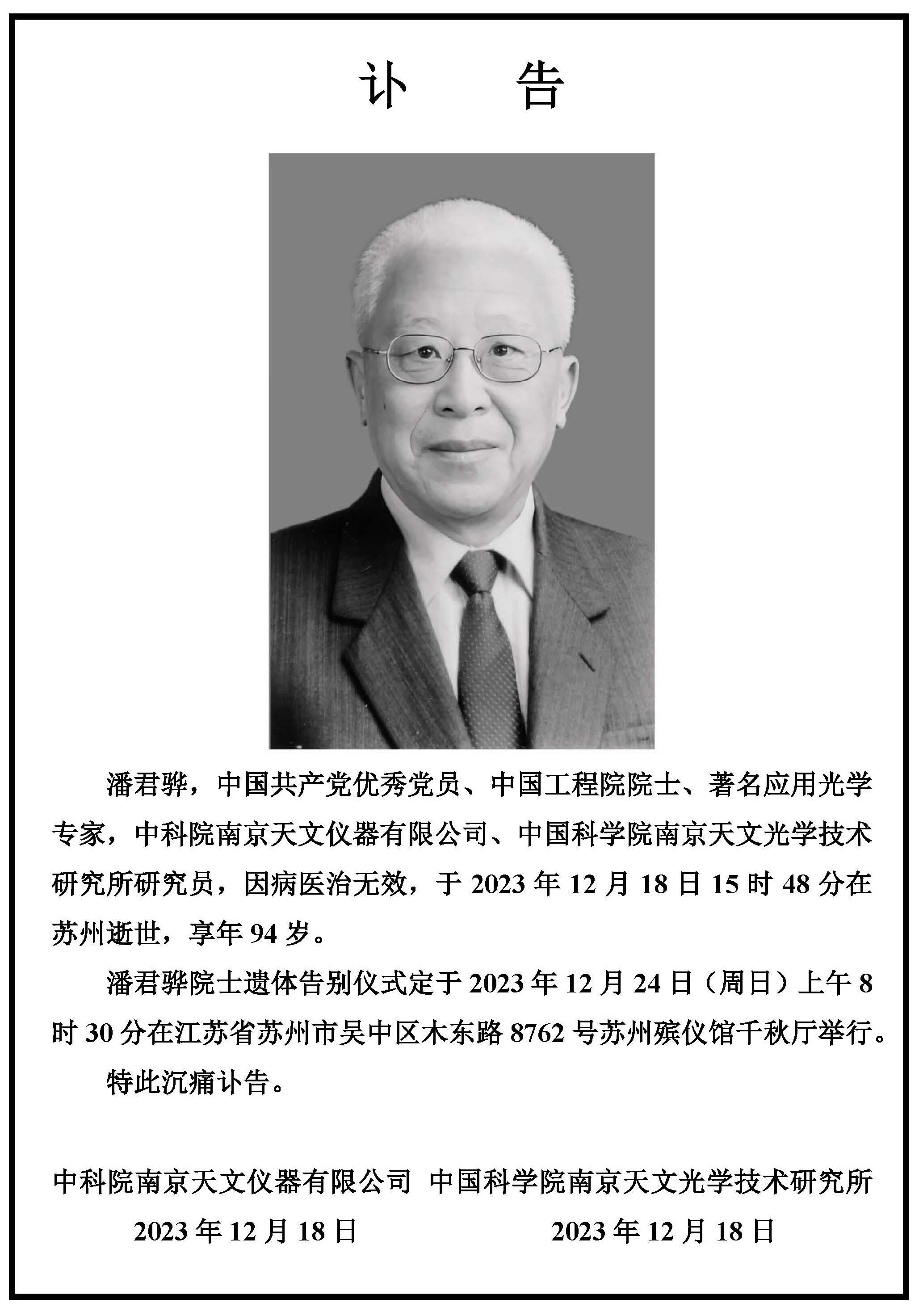 沉痛悼念潘君骅院士
