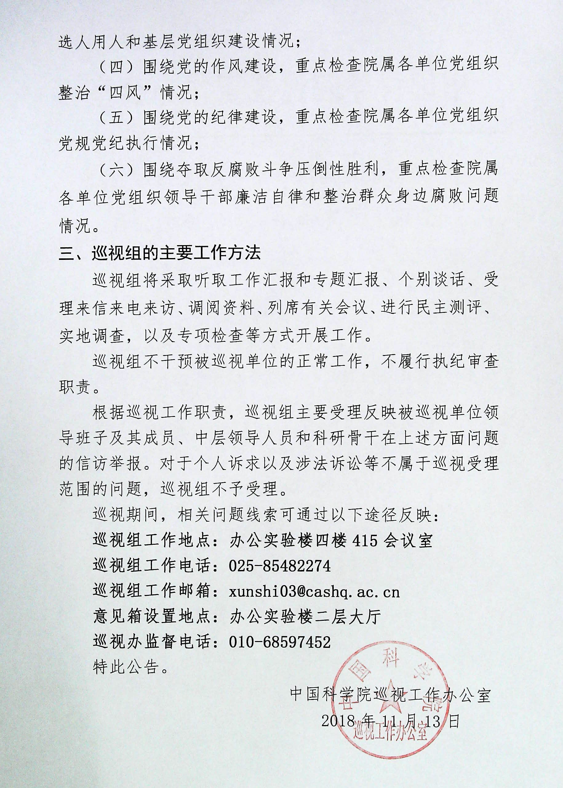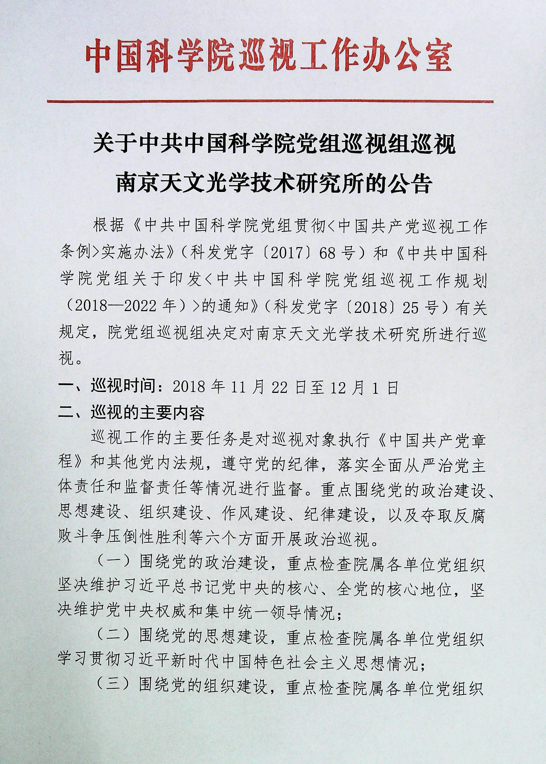 关于中共中国科学院党组巡视组巡视南京天文光学技术研究所的公告