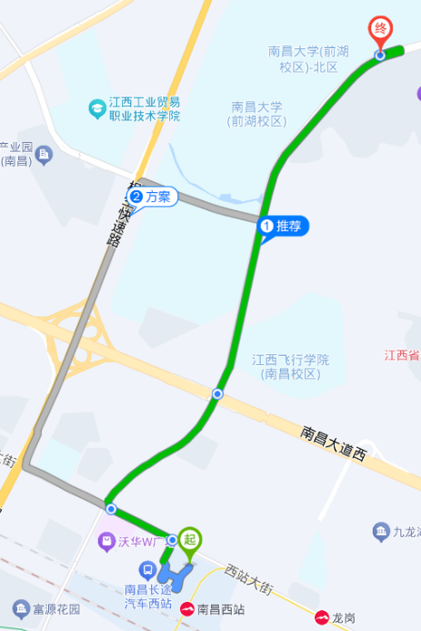 (2)南昌西站至前湖迎宾馆(约6 公里)