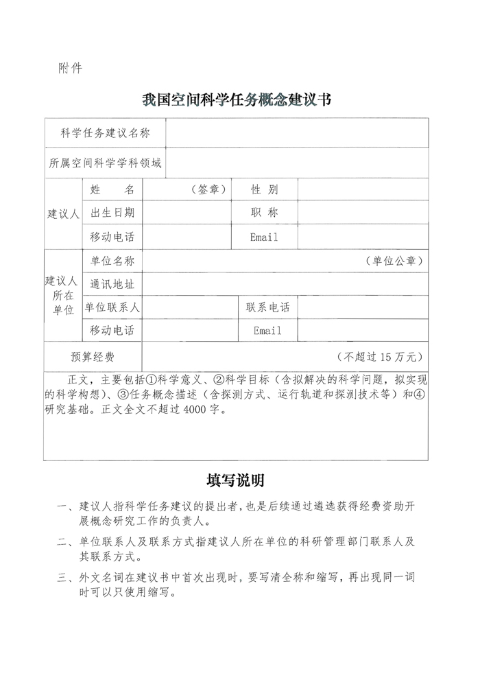 我国空间科学任务概念建议书
