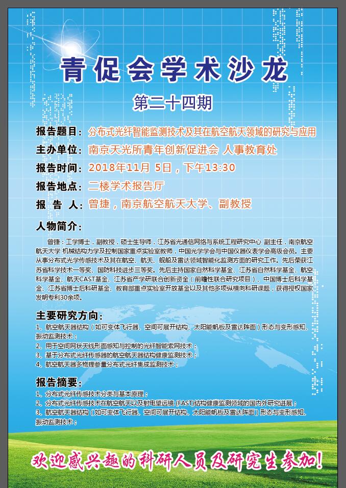 11月5日:分布式光纤智能监测技术及其在航空航天领域的研究与应用