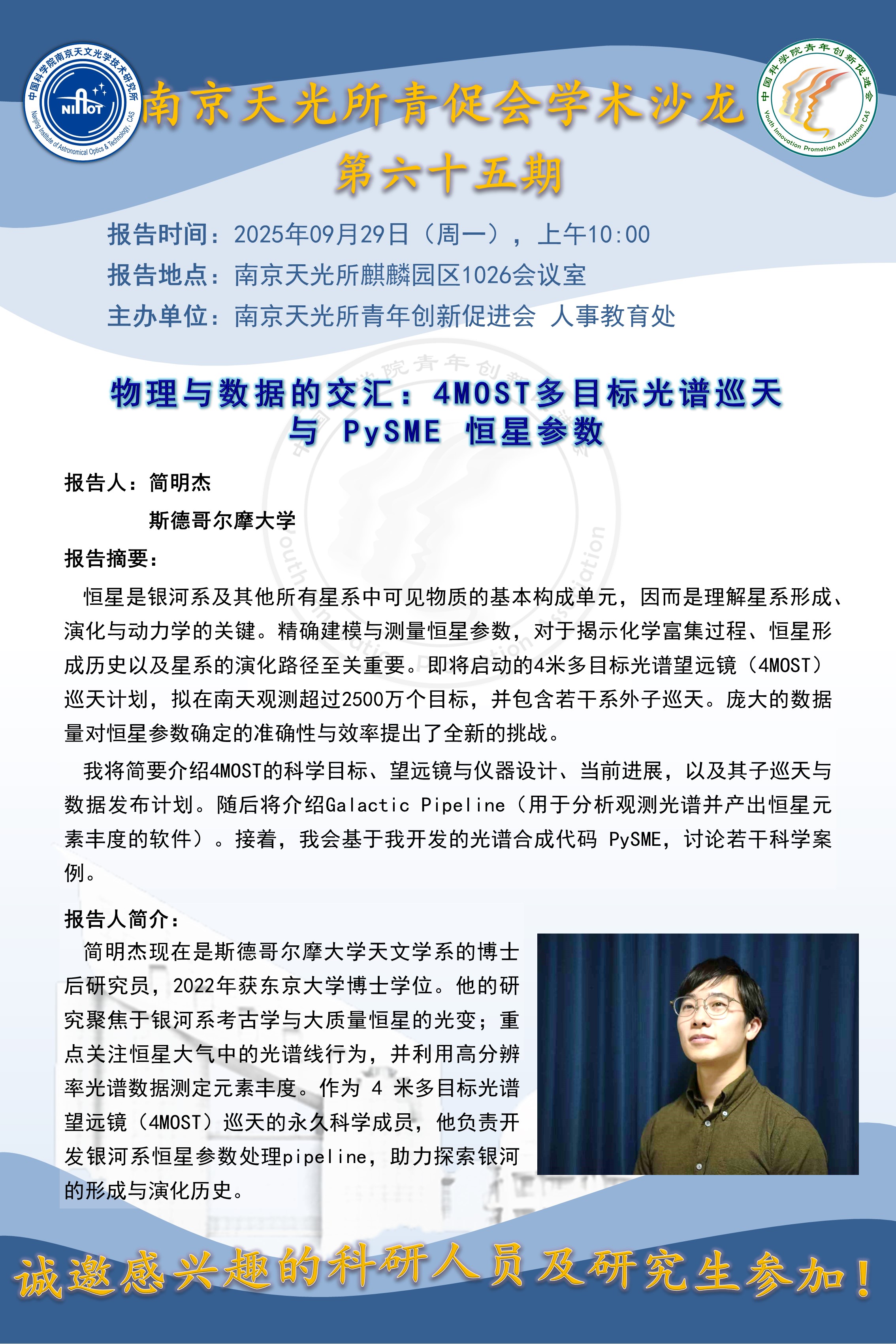 【9月29日】物理与数据的交汇:4MOST多目标光谱巡天与PySME恒星参数