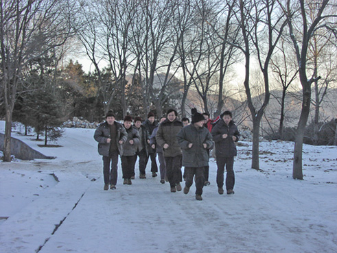 太阳宫门前广场,“大众广播体操”温暖了冬日的寒风;玄武湖畔,迎新的脚步荡漾起满池的湖水;兴隆山上,欢乐的步伐激扬起美丽的瑞雪。迎新长跑活动已成为天光所员工和研究生一起辞旧迎新的特色传统。