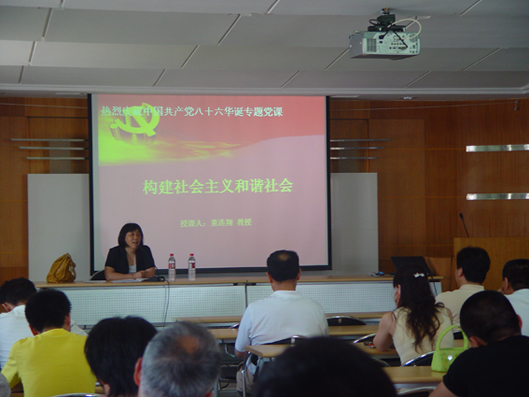 6月25日,为迎接中国共产党诞辰86周年,南京天光所党委邀请江苏省委党校党史党建教研部副主任董连翔教授为全体党员、入党积极分子、共青团员和非党员干部所上了一堂题为“构建社会主义和谐社会”的专题党课。