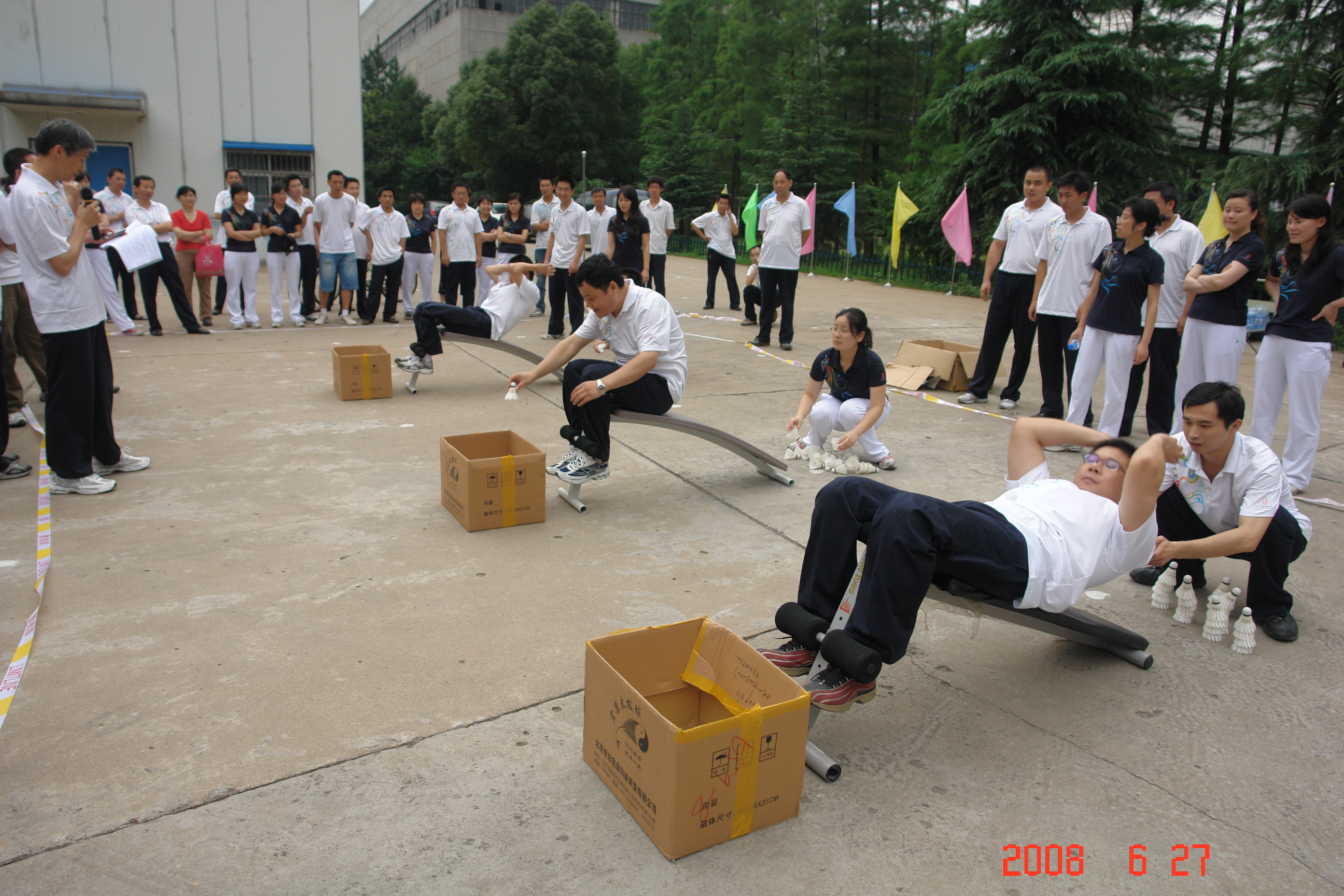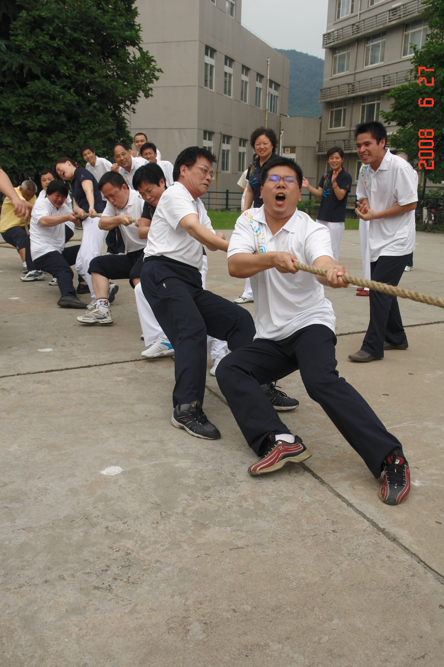 随后,本所7个部门代表队进行了大众广播体操比赛、踢毽子、趣味仰卧起坐、慢骑自行车和拔河比赛,参赛人次达128人次。比赛项目充分体现了“喜迎奥运、科学健身、展示风采、建设和谐”主题。只见场上选手全力拼搏、激烈竞争,场下观众呐喊加油,掀起了一个又一个高潮。实验大楼前汇聚成欢乐的海洋,充分展示了我所职工喜迎奥运的热切期盼和奋发进取的精神风貌!