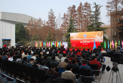 12月11日,南京天光所50周年所庆典礼在办公实验大楼前的广场上隆重举行。南京天光所的新老职工和来宾欢聚一堂,以极其简朴而隆重的方式热烈庆祝南京天光所的50华诞。江苏省政协副主席、中国科学院南京分院院长周健民,中国天文学会理事长、国家天文台副台长赵刚,国家天文台副台长王宜,江苏省科协副主席、南京分院原院长严寿宁,南京分院副院长李世杰及分院各职能部门的领导,院属宁区各兄弟单位领导和南京大学天文系主任丁明德、党委书记刘桂霞;苏定强院士及南京天光所的前身南京天文仪器厂、南京天文仪器研制中心时期的部分老领导出席了庆典活动。所庆典礼由南京天光所党委书记张丽萍主持。
