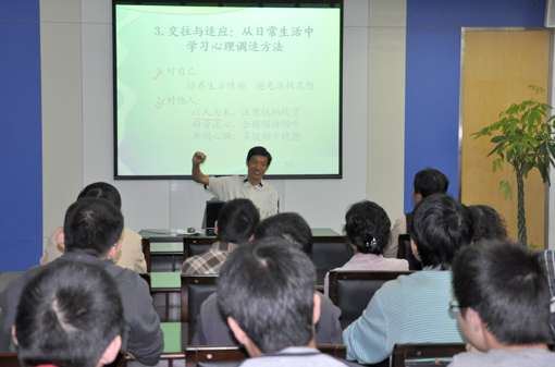 傅宏教授从事心理教育教学科研多年,曾在国外多所知名学府从事过访问讲学工作,阅历丰富,造诣深厚。在讲座中,傅宏教授以一个全新的角度,分析了备受大家关注的有关心理健康问题,他从心理学角度分别剖析身心健康的涵义,使学生们了解到应该在更高层面上加强心理健康的修养,通过各种有效途径努力实现生物—心理—社会的和谐统一,每个人都要做好对自己合理的认识和感受,在珍惜自己的同时也要学会关注身边的环境和关爱他人。傅教授运用形象的比喻,采用贴近学生的鲜活事例,深入浅出的讲解和风趣幽默的谈吐获得了同学们的共鸣,整场讲座气氛热烈。