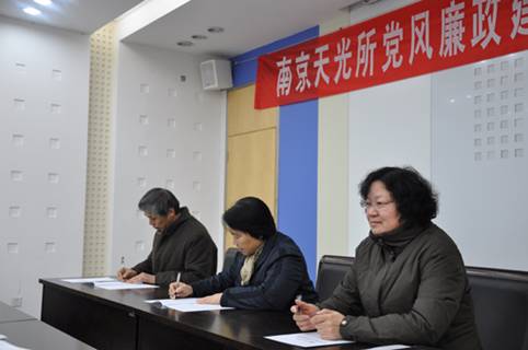 12月23日,南京天光所中层以上干部在二楼会议室召开会议举行党风廉政建设责任书签字仪式。各党支部书记、纪委委员列席了会议。