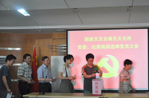 会上,宣读了《中共中国科学院国家天文台南京天文光学技术研究所党委、纪委选举办法》,并介绍了各位候选人的基本情况。两委候选人由南京天光所各支部根据《中国科学院院属事业单位党委换届选举工作实施办法(试行)》中的提名原则推选产生。其中党委委员候选人9名,纪委候选人4名,候选人人数与应选人数差额比例均为20%。经党员大会无记名投票选举,产生中共南京天光所第二届党委会委员7名(按姓氏笔画排序):朱永田、齐金英、李国平、张丽萍、张振超、宫雪非、袁祥岩;中共国家天文台第二届纪律检查委员会委员3名(按姓氏笔画排序):张丽萍、曾裔中、谢立华。