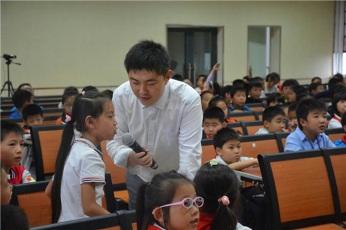 这些有趣的天文学知识让孩子们听得兴致盎然,如痴如醉,他们纷纷举起稚嫩的手提问,例如:彗星从哪里来?它们有多少颗?月亮上到底有没有嫦娥和玉兔?董志川对这些问题积极作答并和小同学们互动。