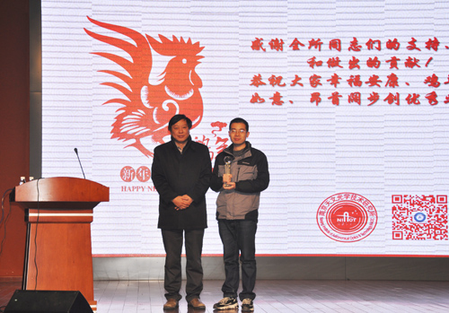 随后,副所长、党委副书记、纪委书记宫雪非宣布研究所“2016年度优秀青年人才奖”授予大口径光学技术研究室李博副研究员,在欢庆的颁奖乐声和热烈的掌声中,李国平书记向获奖者李博颁发了奖杯并表示祝贺。