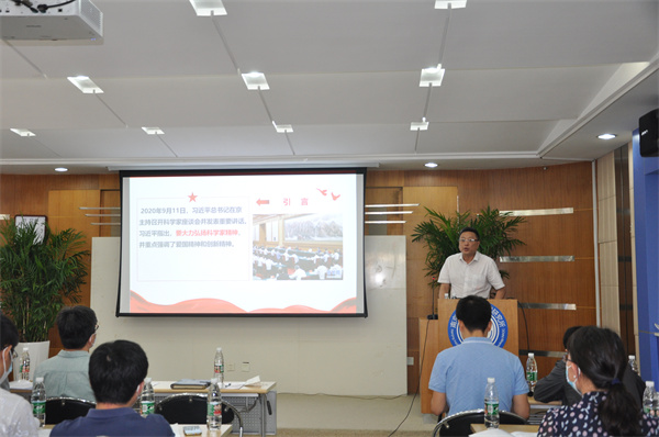 党委李国平书记做了题为“弘扬科学家精神,做新时代追梦人”的报告,报告全面诠释了科学家精神的内涵,详细介绍了“两弹一星”精神、载人航天精神、西迁精神、LAMOST精神、南极精神、以及钱学森、屠呦呦、黄旭华、南仁东等的先进事迹,并鼓励大家要弘扬科学家精神,保有家国天下的情怀,不计名利,潜心研究,紧跟老科学家们的步伐,将个人追求与国家需要紧密结合,勇做科技报国的践行者和示范者、中华民族复兴的追梦者和筑梦者。