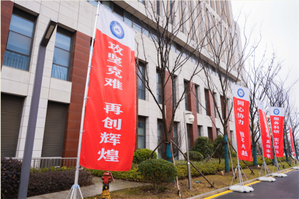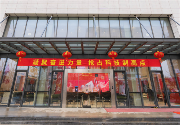 “凝聚奋进力量,抢占科技制高点”的横幅