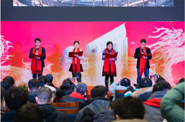 接下来进行的是由研究所工会牵头组织的2024年迎新春联欢会,由段然和关智文主持。联欢会在热闹的“啪啪、砰砰”踩气球活动中拉开序幕,各部门精心准备的节目精彩纷呈。诗歌朗诵《LAMOST金色的凤凰》将大家带回研制LAMOST项目那段激情燃烧的岁月。崔向群院士发表感言,回顾了LAMOST项目艰辛的研制历程,激励南京天光所人坚定自信,积极进取,弘扬天光所创新优良传统,着力攻克关键核心技术,勇于攀登科技高峰。会议还与我所坚守在南极、兴隆、高淳等地的科研人员现场连线开展新春慰问。