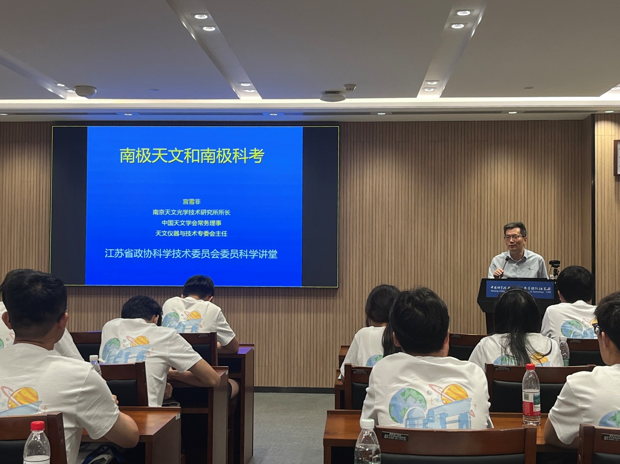 夏令营期间,研究所精心安排了七场高水平学术报告。崔向群院士作了题为“人类理解宇宙的工具——天文望远镜”的特邀报告,系统梳理了望远镜的发展脉络与未来趋势,重点剖析了全球大型望远镜的新技术与新方法,并详细介绍了我国LAMOST、FAST等天文仪器的突破性成就,展望了国产天文仪器的未来发展,殷切期盼更多学子投身天文事业。南京天光所所长宫雪非研究员以“南极天文与南极科考”为题,回顾了中国南极考察壮举,展示了我国在南极天文领域的研究成果,并以其亲身科考经历,生动描绘了南极队员的工作与生活图景,带领营员完成了一次难忘的“南极之旅”。何晋平研究员在“天文光谱芯片”报告中,介绍了该芯片的研制背景、科学意义及广阔应用前景,鼓励学子们投身这一充满挑战的领域。窦江培研究员的报告“空间超高对比度成像技术与太阳系外行星探测研究”,深入解读了系外行星探测技术方法及相关科研项目。王靓研究员的“天文光谱漫谈”,全面介绍了光谱学的发展历程及其在天文研究中的关键作用。杨光研究员通过“超轻薄膜望远镜:重塑天文观测的未来”,展望了超轻薄望远镜的特性与应用前景。杜福嘉高级工程师从工程应用视角,在“天文望远镜的精密控制”报告中详解介绍了望远镜控制系统的原理与核心工作。这一系列精彩纷呈的报告,不仅拓宽了营员们的前沿科技视野,更有效激发了他们的创新活力。