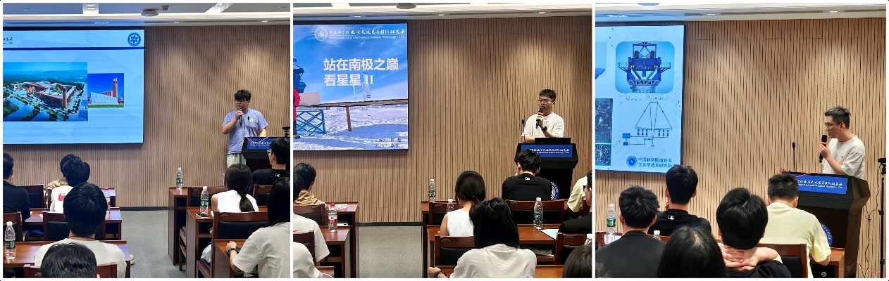 在交流分享环节,南极望远镜项目组李正阳研究员、大口径光学技术项目组李博研究员、天文光谱项目组季杭馨研究员分别与营员们分享了各自研究领域的工作进展与科研心得,进一步点燃了同学们的科研热情。