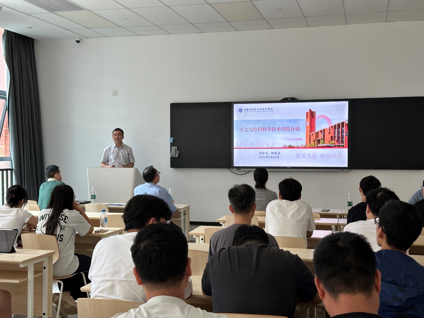 9月16日,中国科学院南京天文光学技术研究所在中国科学院大学南京学院组织开展了2025级新生入学教育。国科大南京学院天文与空间科学技术学院40多名研究生参加了此次活动。党委书记、副所长袁祥岩,副所长、国科大南京学院副院长胡中文,纪委书记任树林,团委书记李正阳,人事教育处教育主管黄庭威出席活动并作专题报告。